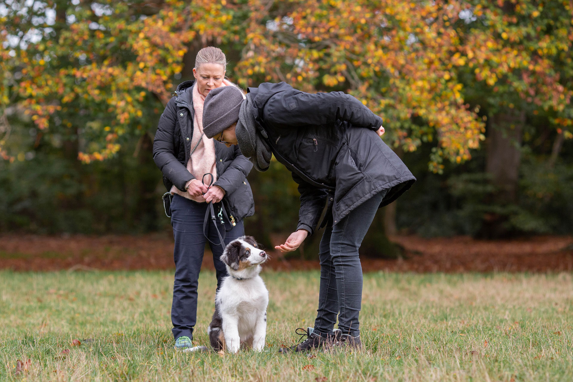 Vi arbejder med glæde, tillid og forståelse, og al træning tager udgangspunkt i positiv forstærkning og principperne bag klikkertræning (du behøver ikke bruge en klikker).